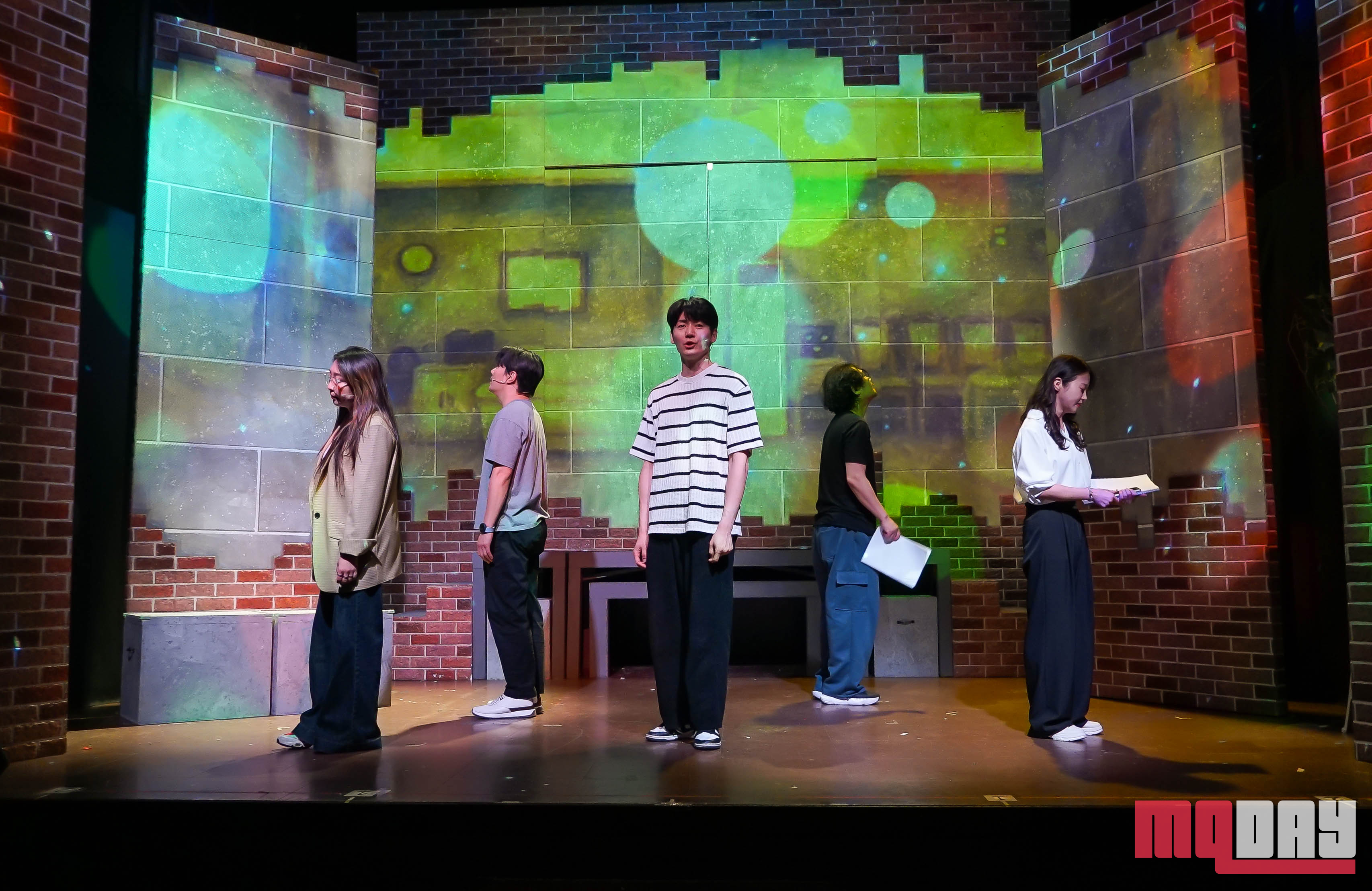 무대는 효율적으로 설계되어있다. 연습실, 대기실, 공연장 등을 빠르게 전환하며 속도감을 유지한다. 공연에는 이주훈, 김도후 강동석, 손난희, 김혜상, 홍서준, 윤토왕, 이유선, 박수현, 김희선, 황인보, 김상원, 고혜미, 서유인 등 실력파 배우들이 참여해 극의 완성도를 높인다, 배우들은 실감나는 연기를 펼치며 유쾌함과 진한 감동을 동시에 선사한다. 무대 연출은 다양한 장치와 복선을 활용해 시각적으로 즐거움을 더하며, 넘버마다 색다른 분위기를 자아낸다.