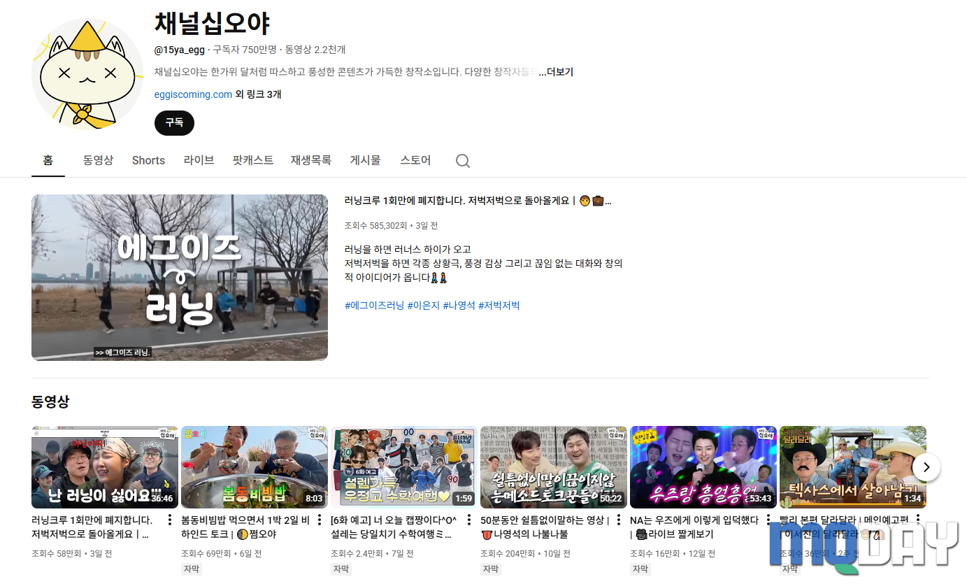 레거시 미디어와 뉴미디어의 경계를 완벽하게 허문 대한민국 대표 웹 예능 채널 ‘십오야’. 대한민국 최고의 스타 PD인 나영석을 필두로 한 제작사 ‘에그이즈커밍’이 이끄는 이 채널은, 방송국 예능의 탄탄한 기획력과 유튜브 특유의 자유로움을 결합하여 종합 예능 엔터테인먼트 채널로 굳건히 자리 잡았다.