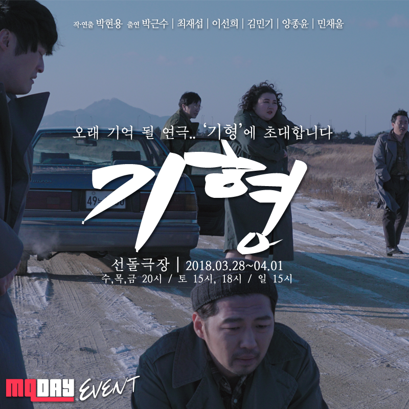 이때, #대학로 #연극 #기형 #선돌극장 #엠큐데이 의 해시태그를 삽입하면 이벤트 응모가 완료됩니다.