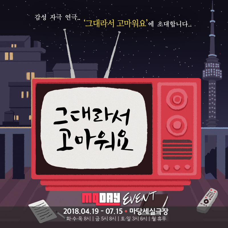 연극 '그대라서 고마워요'가 대학로 '마당세실극장'에서 공연을 합니다.