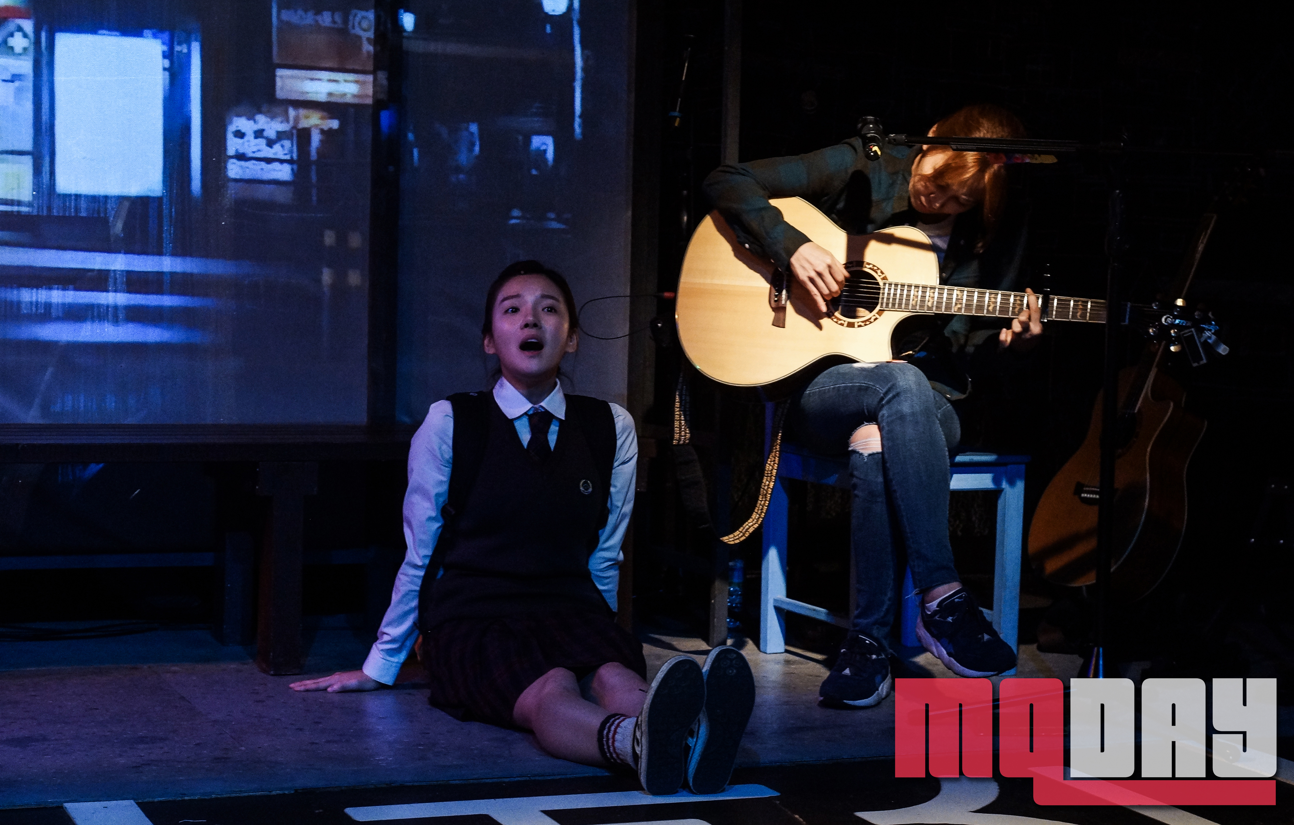 도로 위에 섬처럼 떠있는 중앙차선 버스정류장. 마땅히 연습할 곳 없는 은주는 밤마다 이곳에서 자신의 이야기를 노래한다.