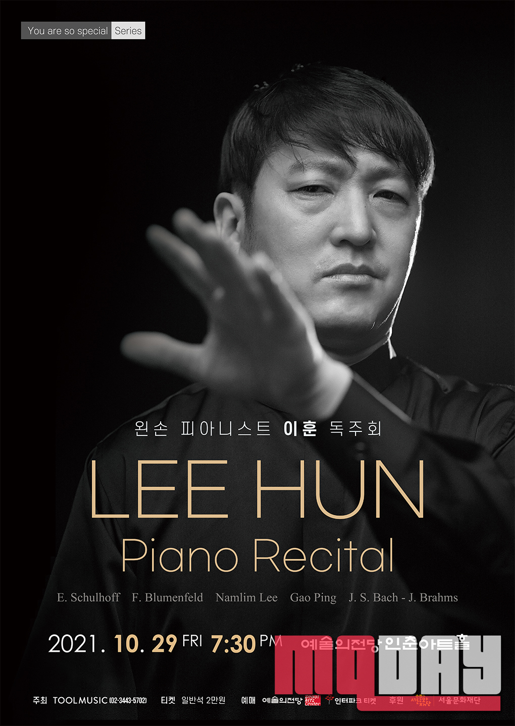 왼손 피아니스트 이훈의 피아노 독주회가 2021년 10월 29일(금) 예술의전당 인춘아트홀에서 열린다. 기적적으로 뇌졸중을 이겨내고 예술가의 삶을 이어가고 있는 이훈의 이번 무대는 코로나19로 고통을 겪는 사람들에게 이훈만의 위로와 희망의 메시지를 전하기 위해 기획됐다.