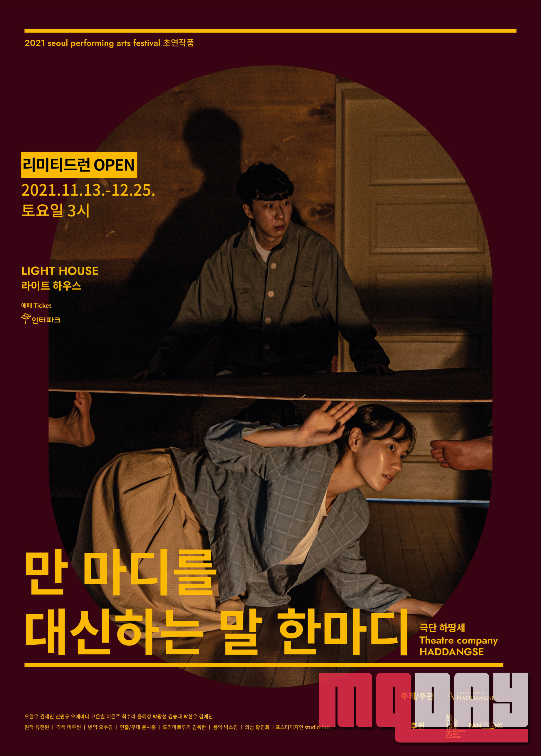 지난해 명동예술극장에서 낭독극의 형태로 첫 선을 보인 극단 하땅세의 ‘만 마디를 대신하는 말 한마디’는 올해 개최된 ‘2021 서울국제공연예술제’에서 초연으로 다시 관객과 만났다. 그리고 11월 27일부터 12월 25일까지 리미티드 런으로 라이트하우스에서 매주 토요일 다시 관객들을 맞는다. 객석 수는 23석으로 티켓 오픈 당일 올해 모든 회차가 매진될 정도로 관람객들 사이에 입소 문이 났다.