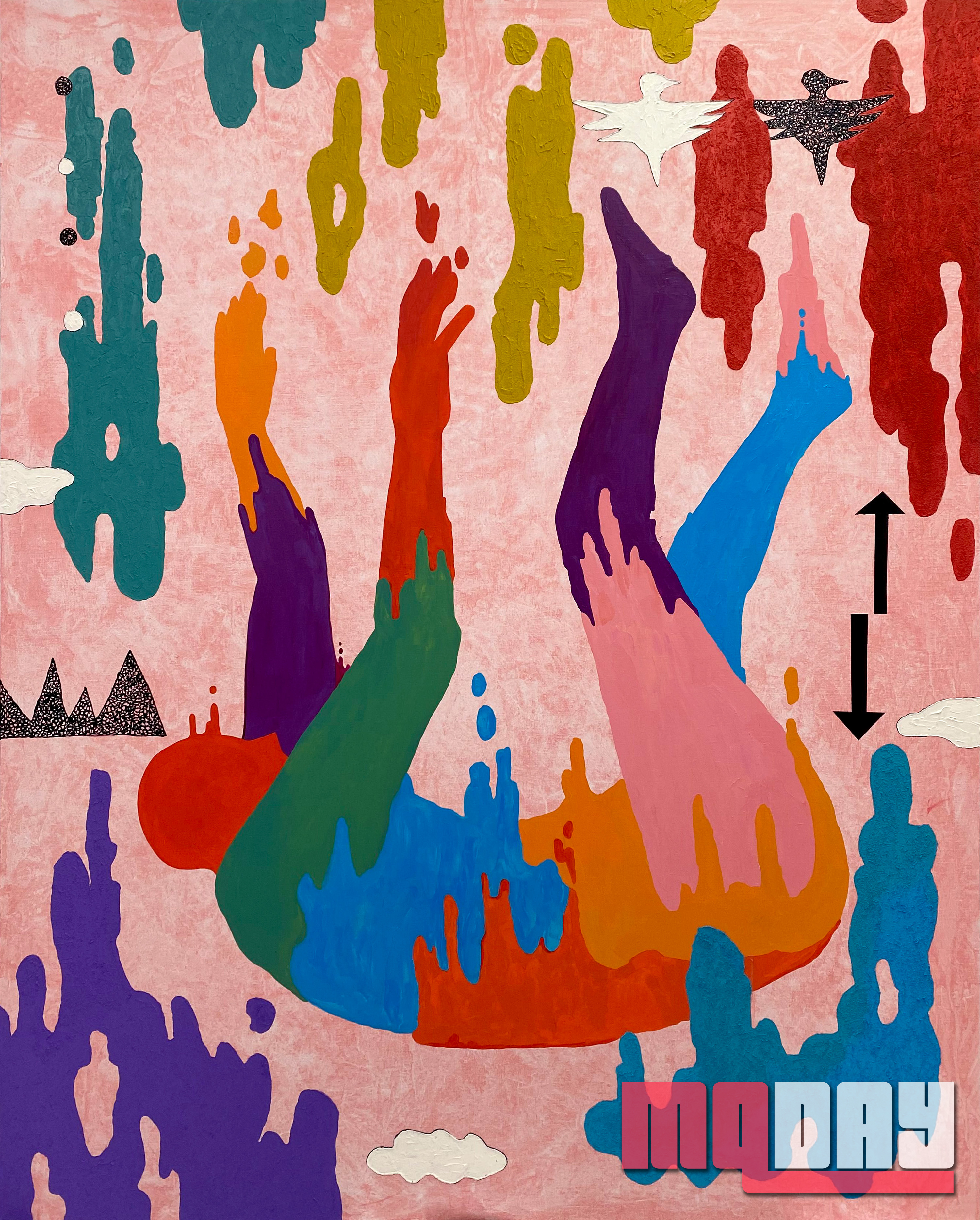 그중 대표작 Diving into (re) birth는 이전에 작가가 보여주었던 도상과는 다른 인체의 면적인 요소로 집중시키며 그 속에 담긴 상징과 함께 전체적인 그림의 이야기를 완성해나간다.