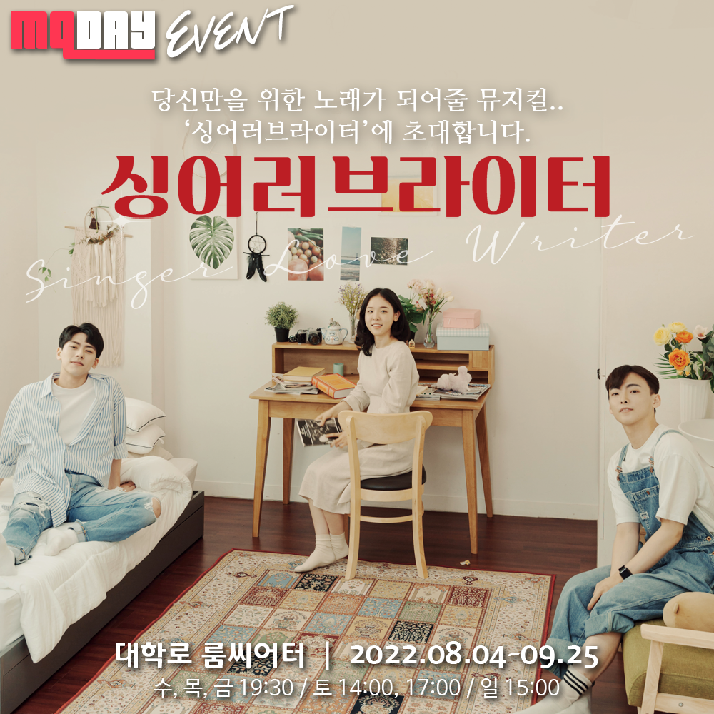 당신만을 위한 노래가 되어줄 뮤지컬 ‘싱어러브라이터’에 초대권을 드립니다.