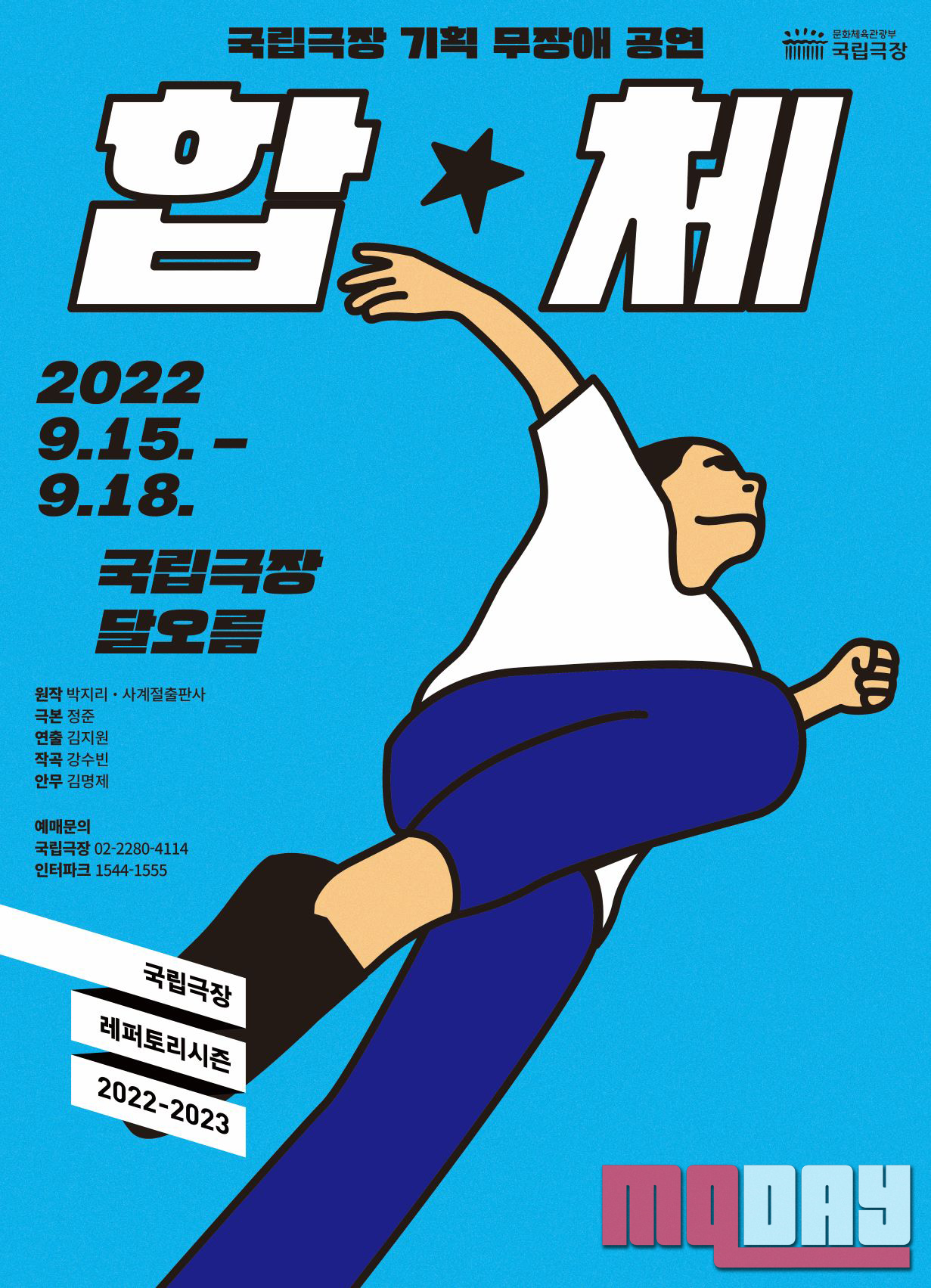 국립극장은 박지리 작가의 동명 소설을 원작으로 한 음악극 ‘합★체’를 9월 15일(목)부터 18일(일)까지 달오름극장에서 초연한다. 저신장 장애인 아버지를 둔 쌍둥이 형제의 성장담을 그리는 작품으로, 한글 자막과 음성 해설, 수어 통역이 함께하는 무장애(배리어 프리, Barrier-free) 공연으로 선보인다.