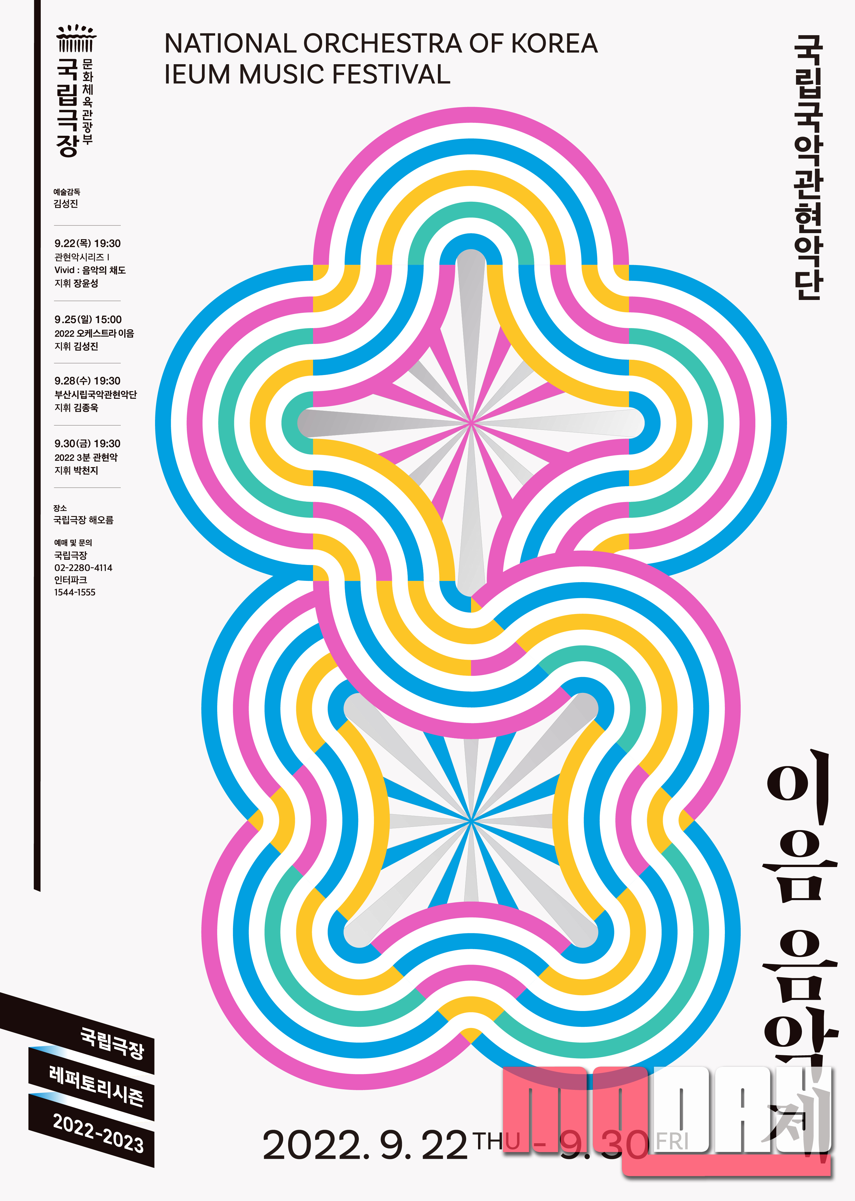 국립극장 전속단체 국립국악관현악단(예술감독 김성진)은 창작음악 축제 ‘이음 음악제’(이하 이음제)를 9월 22일(목)부터 30일(금)까지 국립극장 해오름극장에서 개최한다.