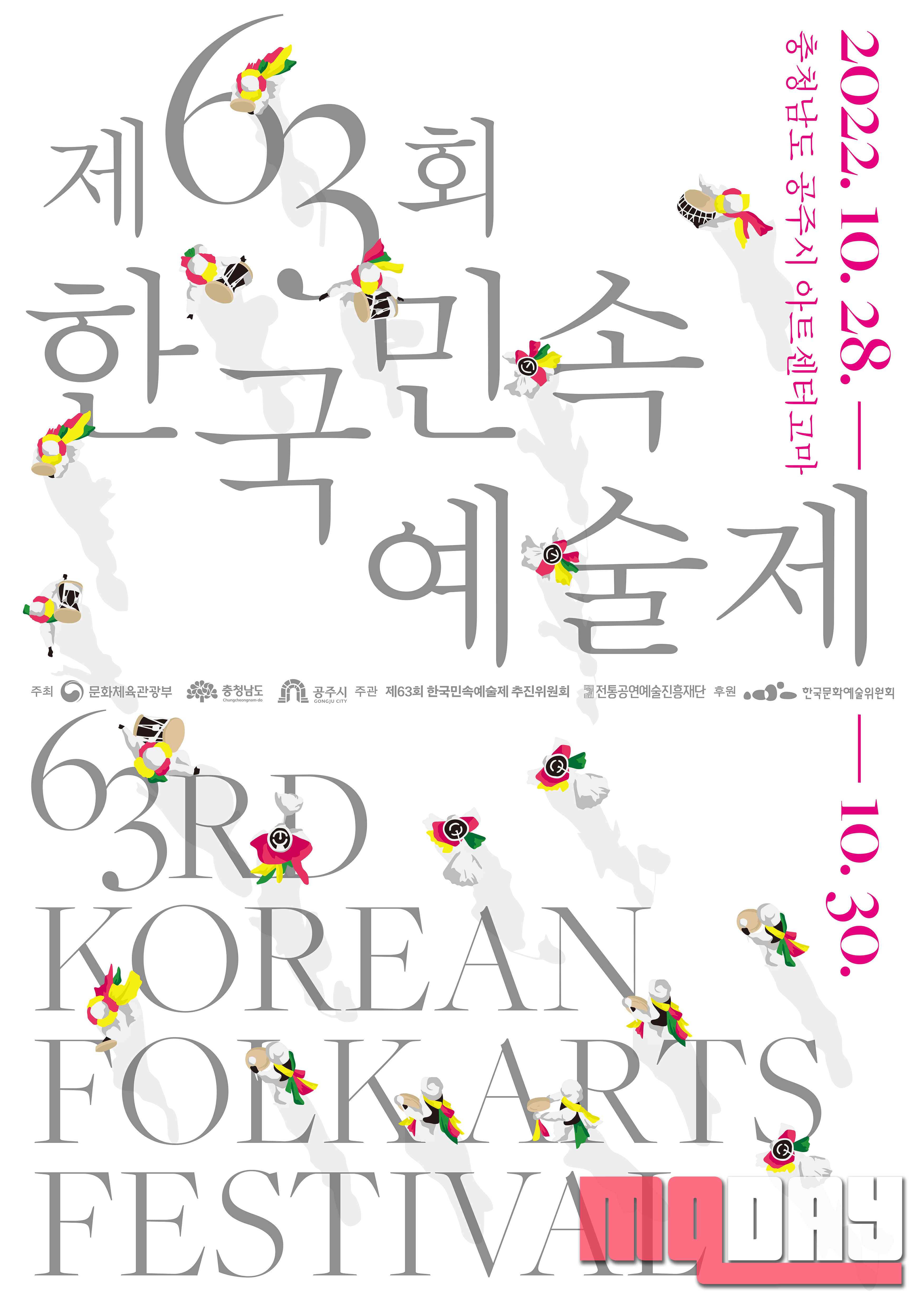 전통공연예술진흥재단(이사장 김삼진)과 한국민속예술제 추진위원회(위원장 김헌선)가 주관하는 ‘제63회 한국민속예술제’(이하 한국민속예술제)가 10월 28일(금)부터 10월 30일(일)까지 충청남도 공주시 아트센터 고마에서 개최된다.