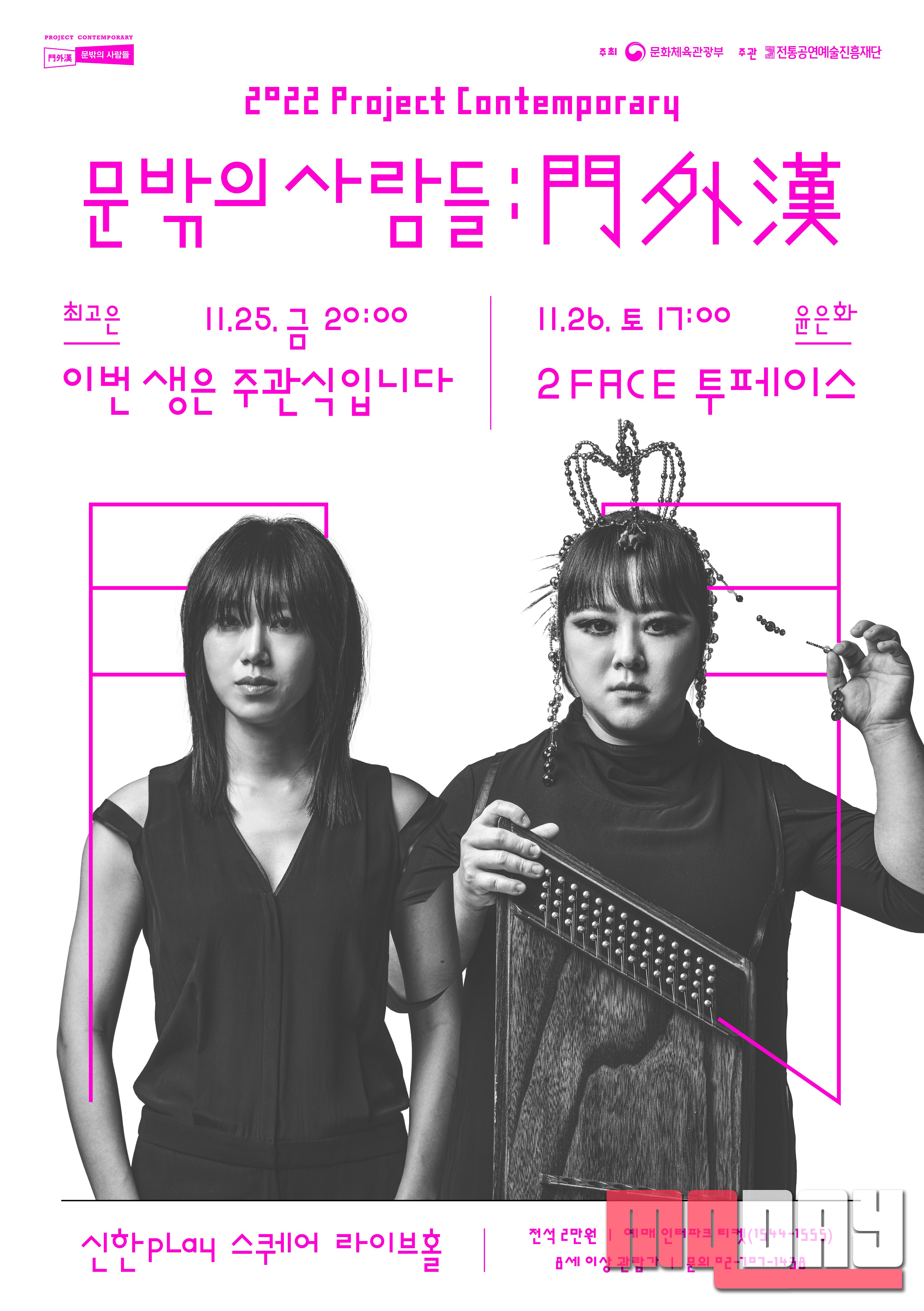 전통공연예술진흥재단(이사장 김삼진)이 2022 프로젝트 컨템퍼러리 ‘문밖의 사람들 : 門外漢’ 공연을 11월 25일, 26일 양일간 신한 pLay 스퀘어 라이브홀에서 개최한다.