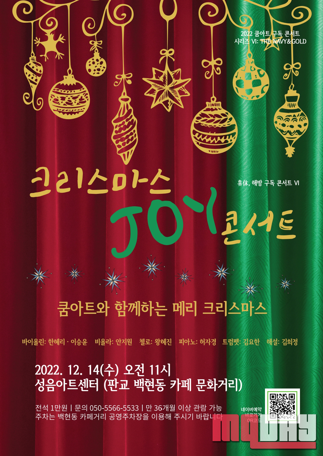 -쿰아트 크리스마스 JOY 콘서트, 12월 14일(수) 오전 11시 성음아트센터에서 개최