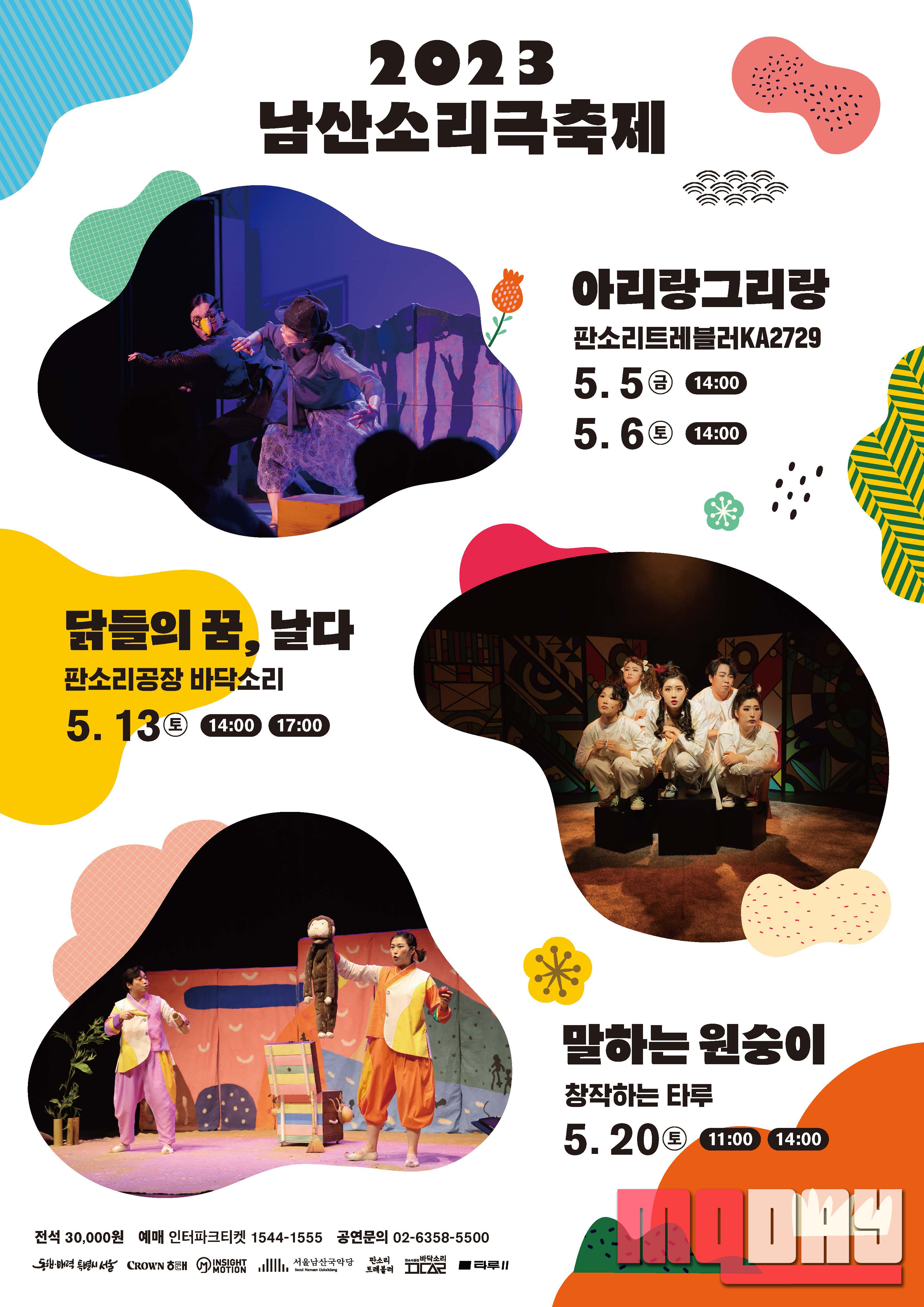 5월 가정의 달을 맞아 서울남산국악당 선보이는 ‘2023 남산소리극축제’가 5월 5일부터 20일까지 개최된다. 2023 남산소리극축제는 3주간 온 가족이 함께 즐길 수 있는 3편의 창작 판소리극을 통해 우리 고유의 문화예술과 더 친숙해지는 시간을 마련하고자 한다.