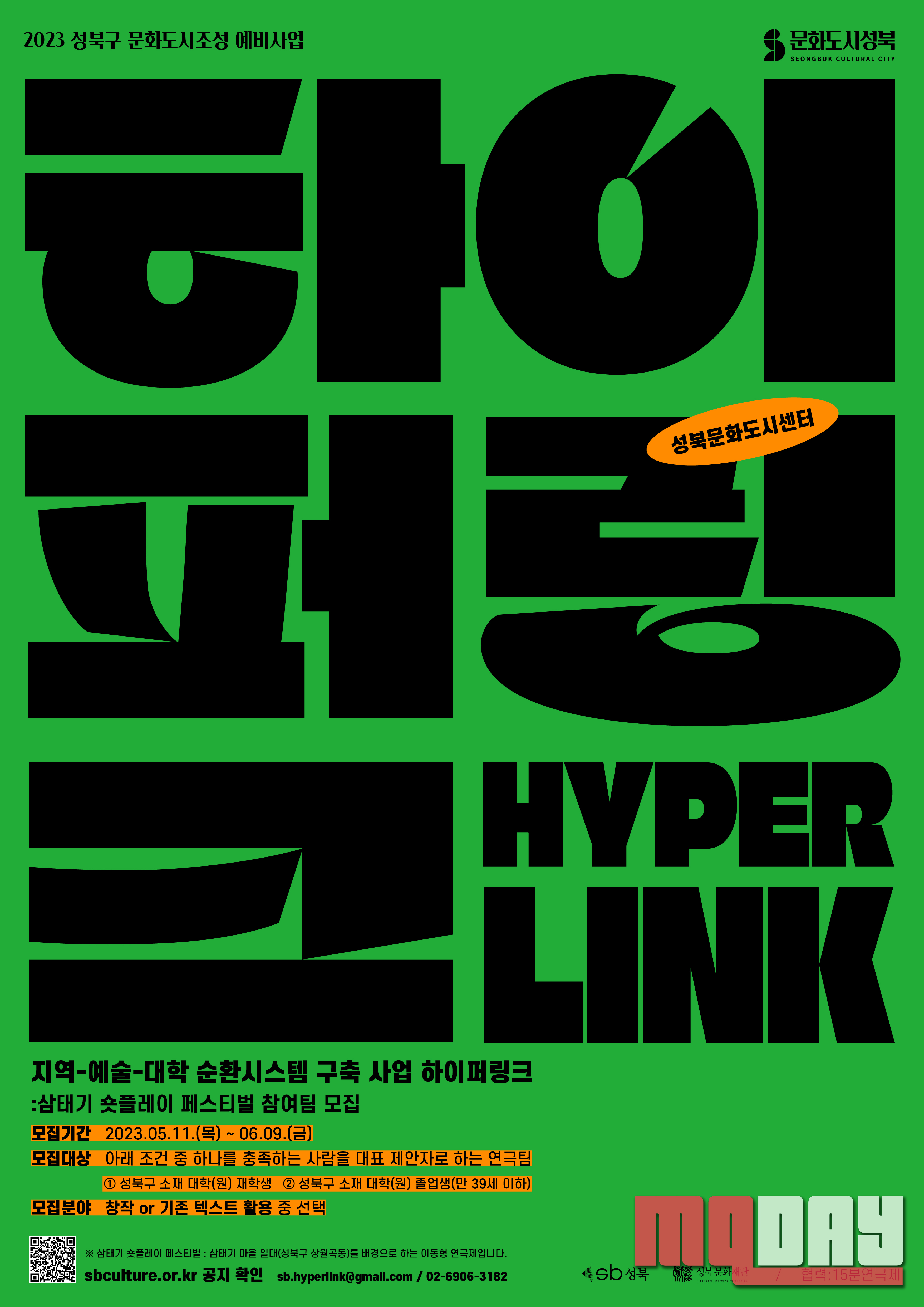 하이퍼링크는 성북구 대학 학생들의 활동을 다양한 지역 자원과 연결하는 시도를 통해 성북 지역 예술 창작 환경의 지속 가능성을 증진하기 위한 사업으로 영상예술, 시각예술, 공연예술 세 개 분야로 진행된다.