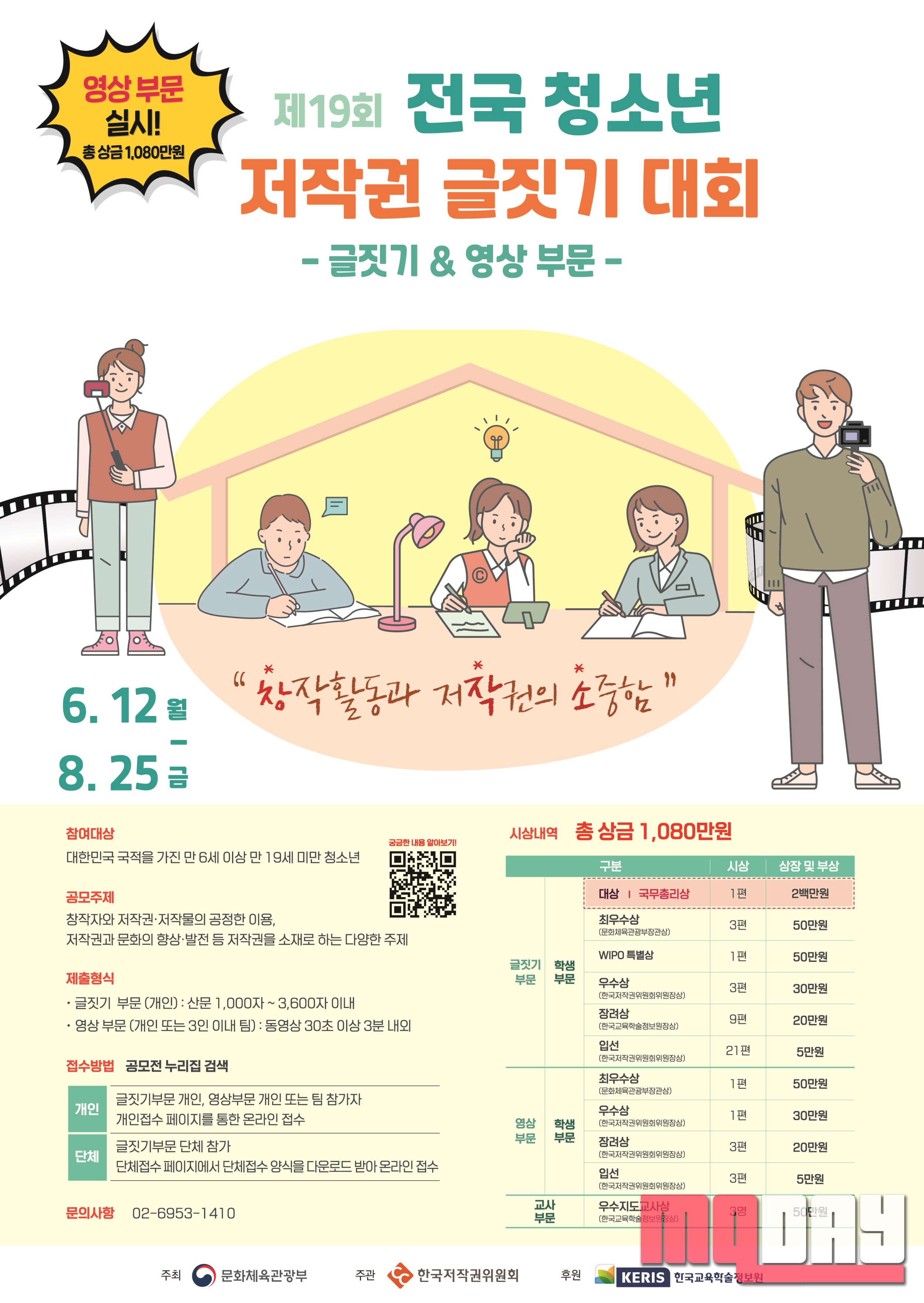 -제19회 전국 청소년 저작권 글짓기 대회, 12일부터 접수 시작