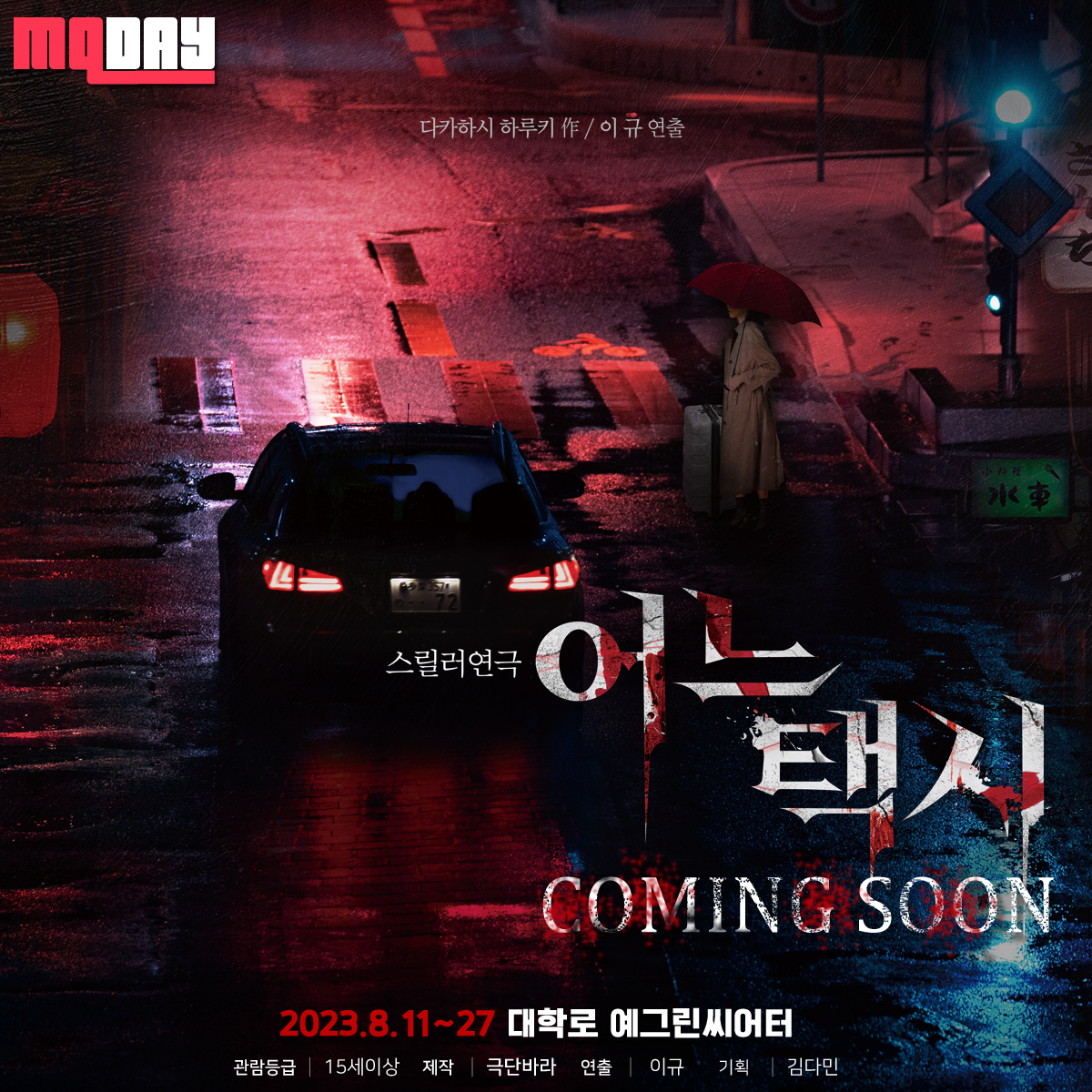 한 순간도 긴장을 놓칠 수 없는 연극 ‘어느택시’가 2023년 8월11일 개막합니다.
