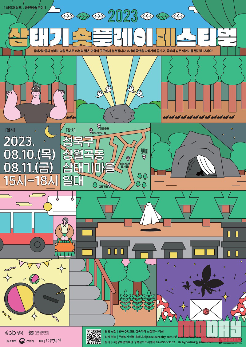 성북문화재단 성북문화도시센터는 지역의 청년 연극인들과 함께하는 ‘삼태기 숏플레이 페스티벌’을 2023년 8월 10일(목)~11일(금) 2일간 개최한다. 이번 ‘삼태기 숏플레이 페스티벌’은 성북구 상월곡동 일대 삼태기마을의 여러 실내외 장소를 배경으로 펼치는 이동형 연극제로, 2023년 성북구 문화도시 조성 예비사업의 일환인 ‘하이퍼링크’의 공연예술 분야 프로젝트의 결과를 지역과 공유하는 축제다.