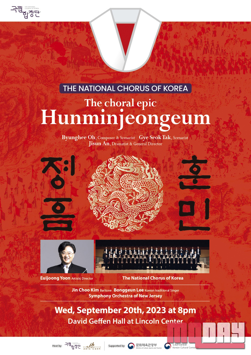 이번 한미동맹 70주년 <국립합창단 미국순회연주회>에서는 2021년 초연 무대를 시작으로, 평단과 관객의 호평을 받은 <훈민정음>을 선보인다. 국립합창단 단장 겸 예술감독 윤의중의 지휘로, 더욱 짜임새 있고 완성도 높은 무대로 관객들과 만난다. 협연으로는 국내외 다수의 오페라 및 다양한 무대의 주역으로 활약하고 있는 바리톤 김진추, KBS 국악대상 수상자이자 다양한 무대에서 활발하게 활동 중인 소리꾼 이봉근 그리고 뉴저지 심포니 오케스트라(Symphony Orchestra of New Jersey)의 협연으로 함께한다.