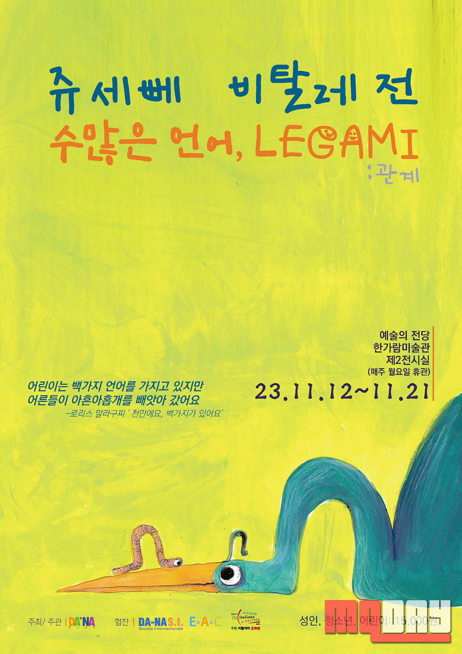 유아 교구를 제조·판매하는 다나플레이(공동대표 황두현, 송해영)는 11월 12일부터 21일까지 서울 예술의전당 한가람미술관에서 ‘쥬세뻬 비탈레의 수많은 언어, LEGAMI’ 전시를 개최한다.