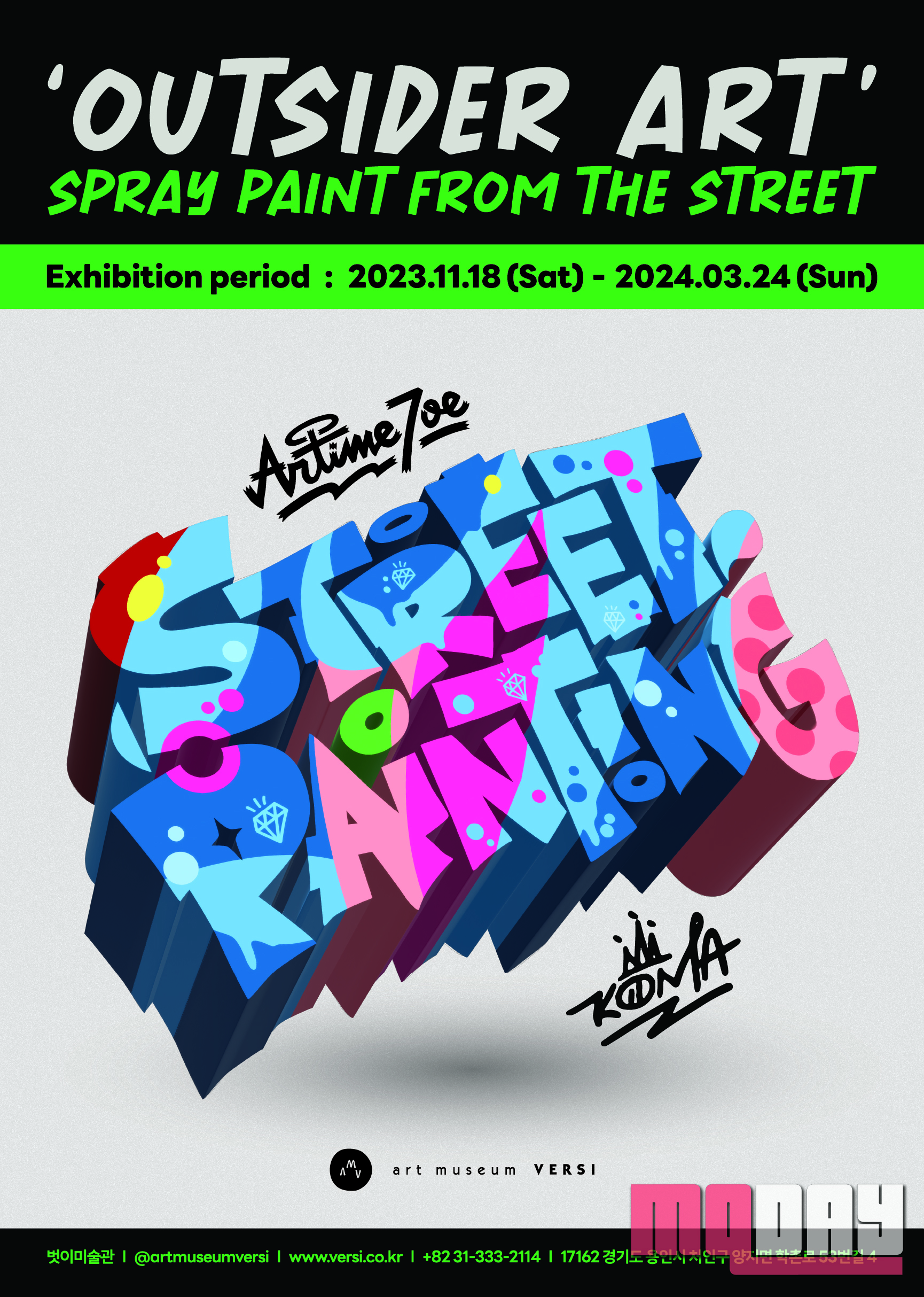 이번 전시에서는 아웃사이더 아트(outsider art)의 한 장르인 그래피티(graffiti)를 소개하며, 대한민국 1세대 그래피티 아티스트인 코마(KOMA)와 알타임 죠(Artime Joe)의 작업을 통해 그래피티를 그들만의 형태와 메시지로 관람객들과 소통하고자 한다.