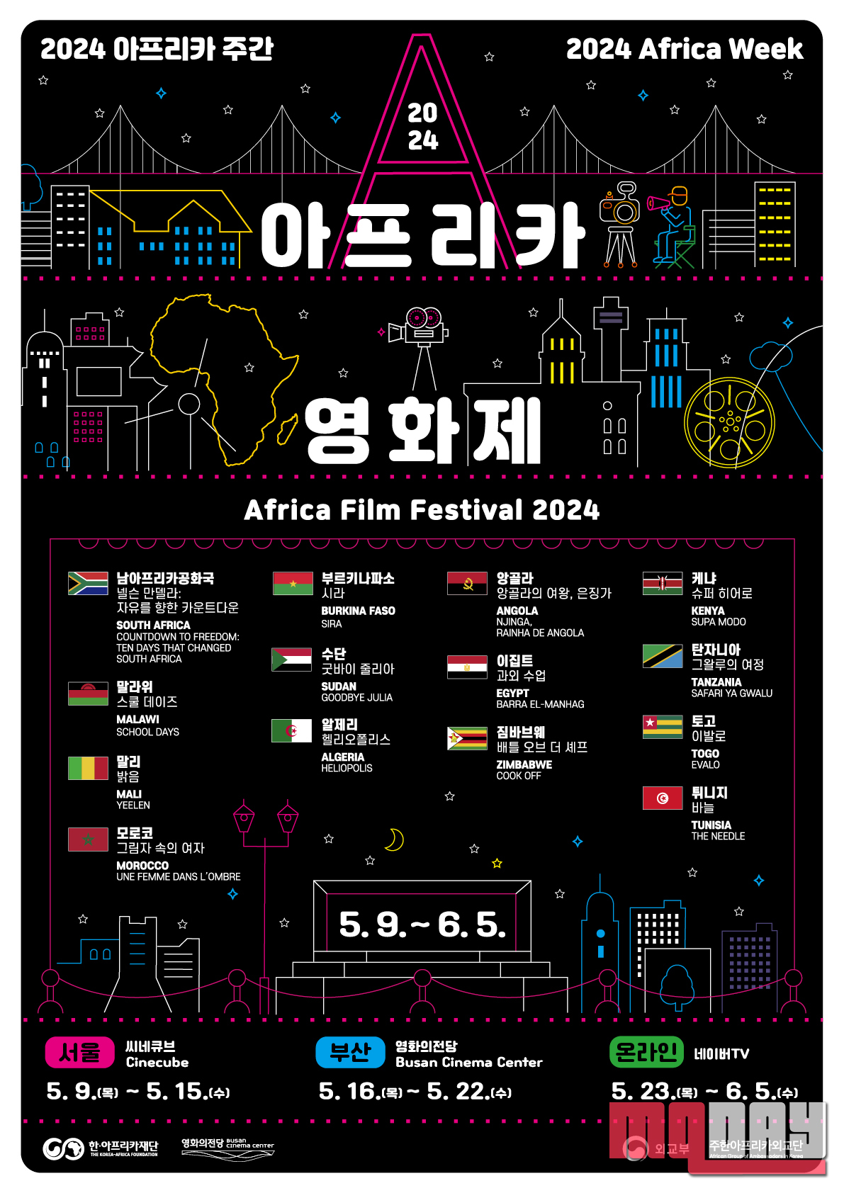 한·아프리카재단(이사장 여운기)은 5월9일부터 6월5일까지 ‘2024 아프리카영화제(Africa Film Festival 2024)’를 개최한다고 밝혔다.