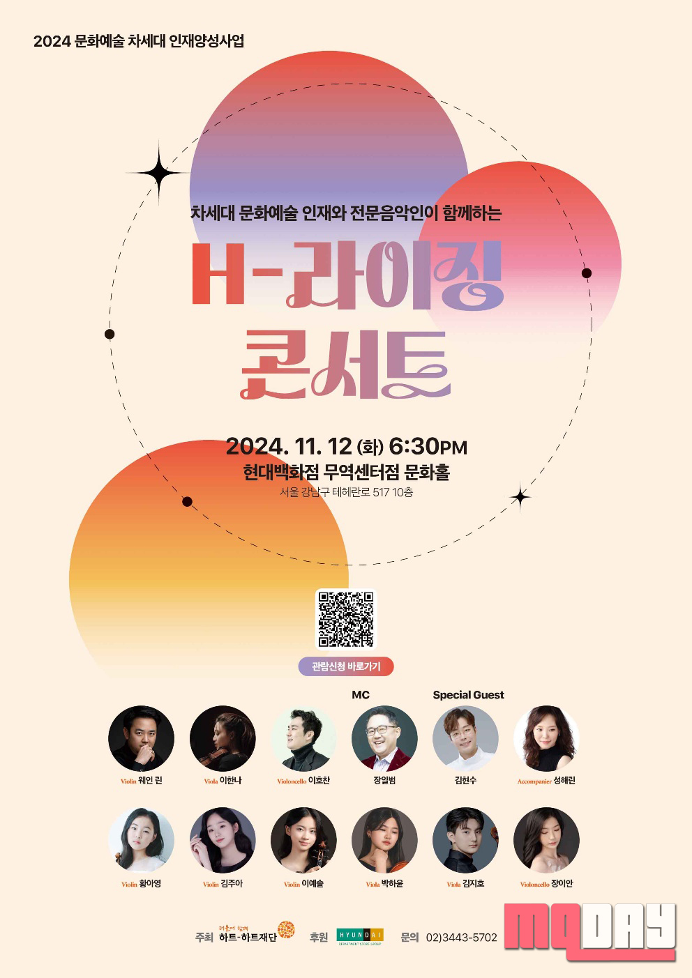 이번 콘서트는 하트-하트재단과 현대백화점그룹이 함께하는 ‘문화예술 차세대 인재 양성 사업’의 일환으로 마련된 자리로, 이 사업은 2018년부터 지금까지 123명의 인재를 발굴해왔다. 장학생들은 한국예술종합학교 조기 입학, 줄리어드 예비학교 입학, 싱가포르 국제콩쿠르 1위 등 눈부신 성과를 내며 활약하고 있다.