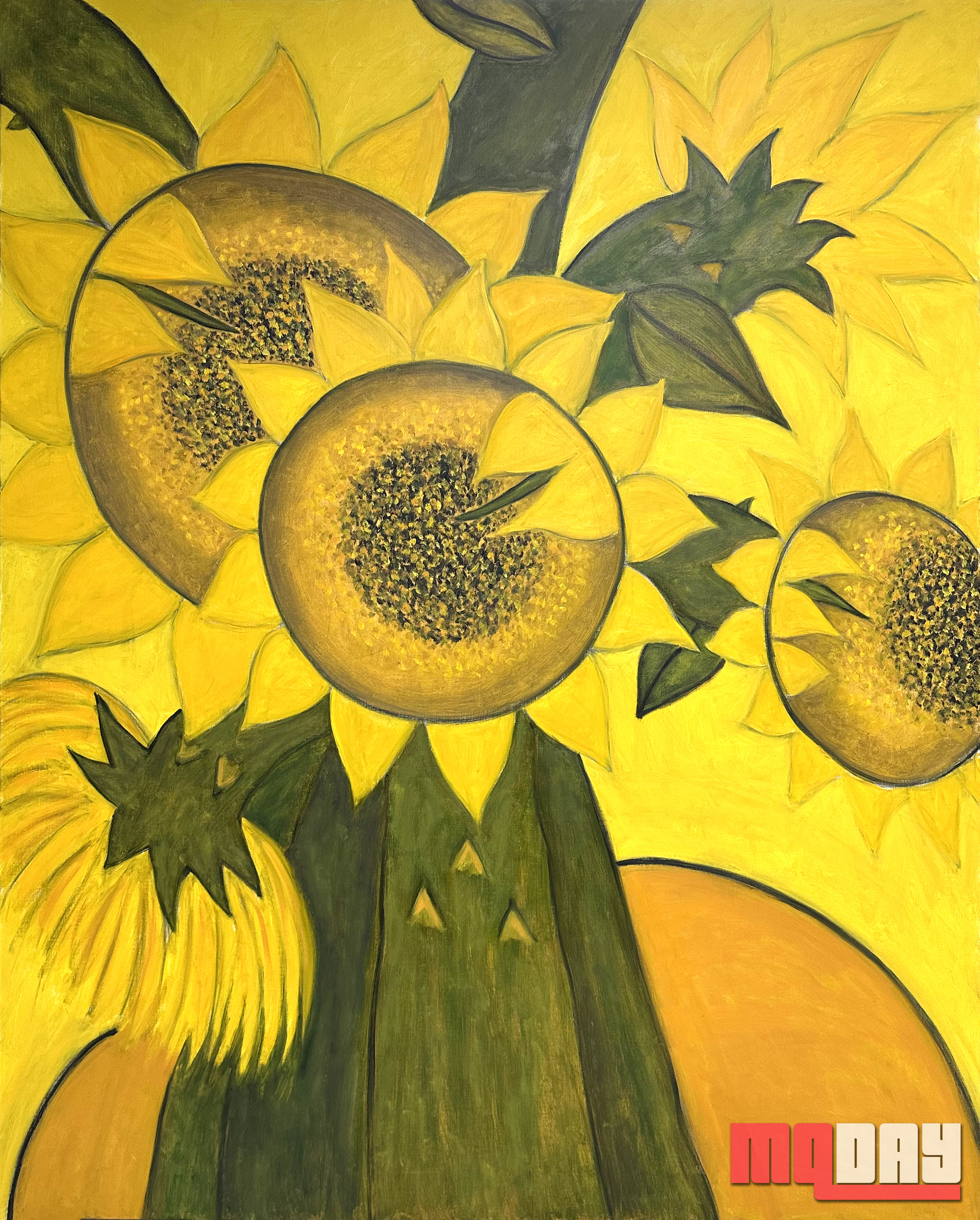 이번에 새롭게 선보이는 해바라기 시리즈는 그의 해바라기 연작을 재해석한 것으로, 유독 굵은 가지와 꽃봉오리를 통해 삶의 무수한 변수를 마주하며 끝내 웃음으로 승화했던 작가의 삶의 의지를 표현하고 있다. 전작보다 더 단순화되고 힘이 더 느껴지는 이번 시리즈는 오늘 역사적 난제 앞에 다시금 마주 서야 하는 이들에게 전하는 작가의 메시지이기도 하다.