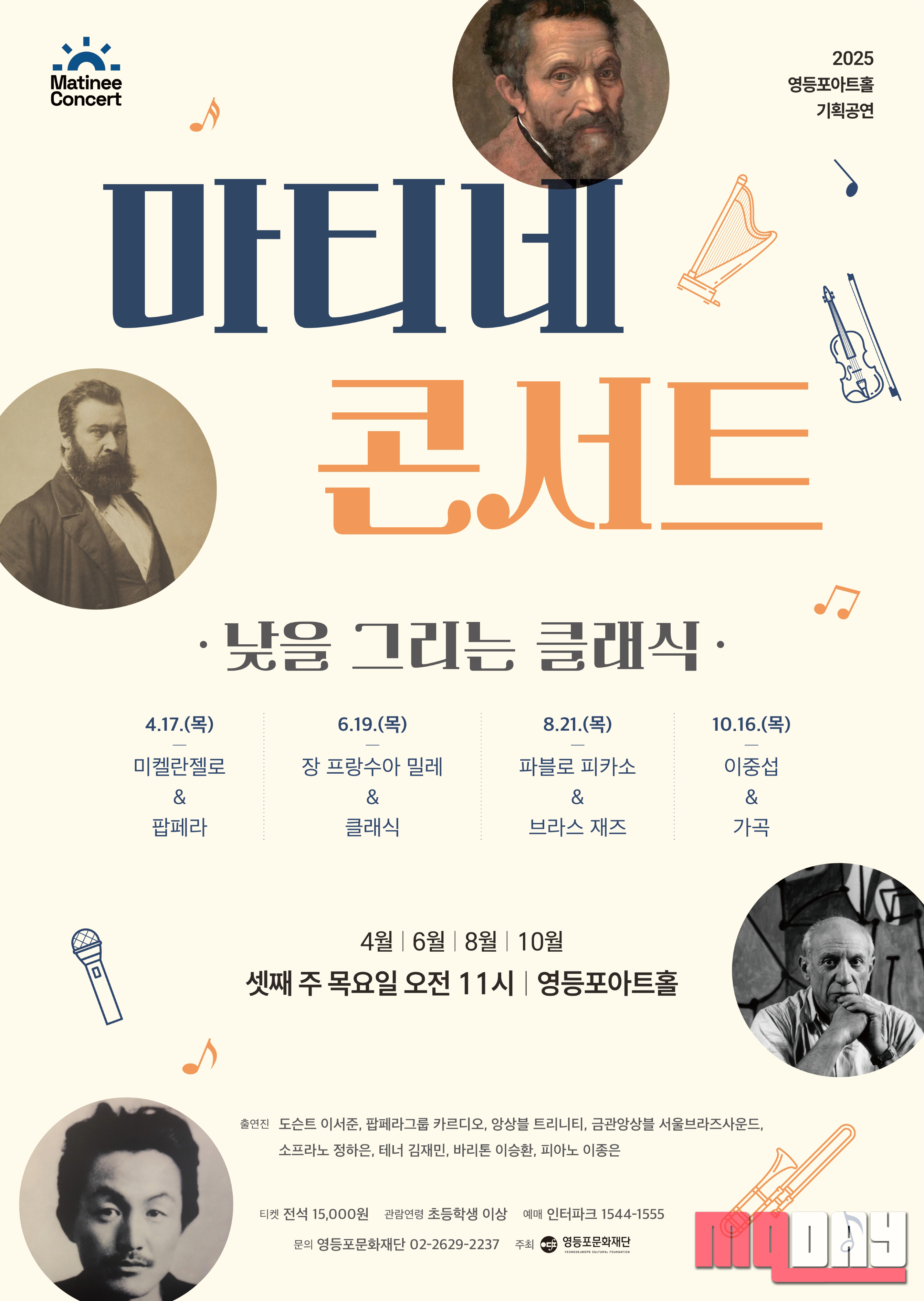 영등포문화재단(대표이사 이건왕)은 2025년 영등포아트홀 기획공연 프로그램의 일환으로 ‘마티네콘서트-낮을 그리는 클래식’을 선보인다.