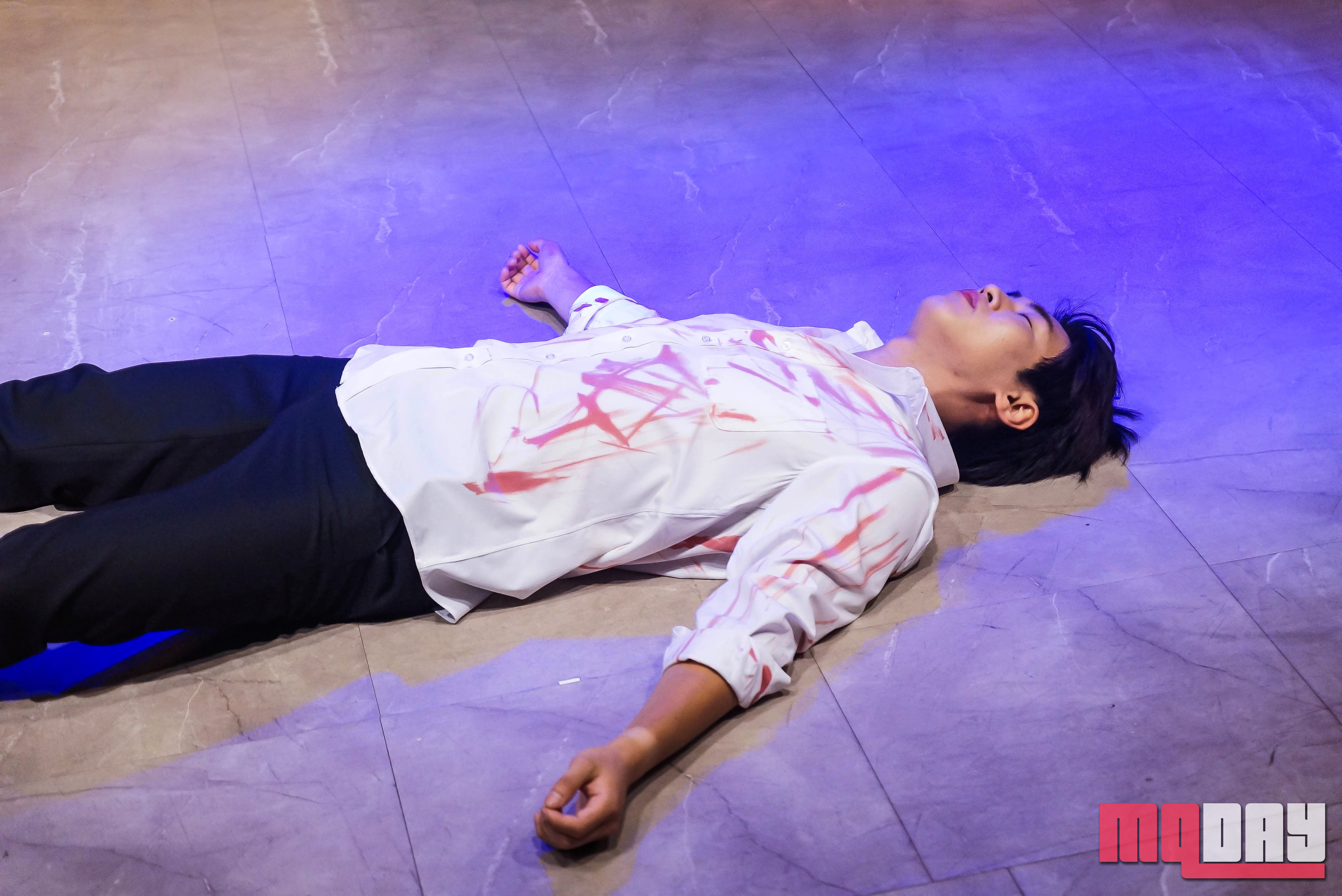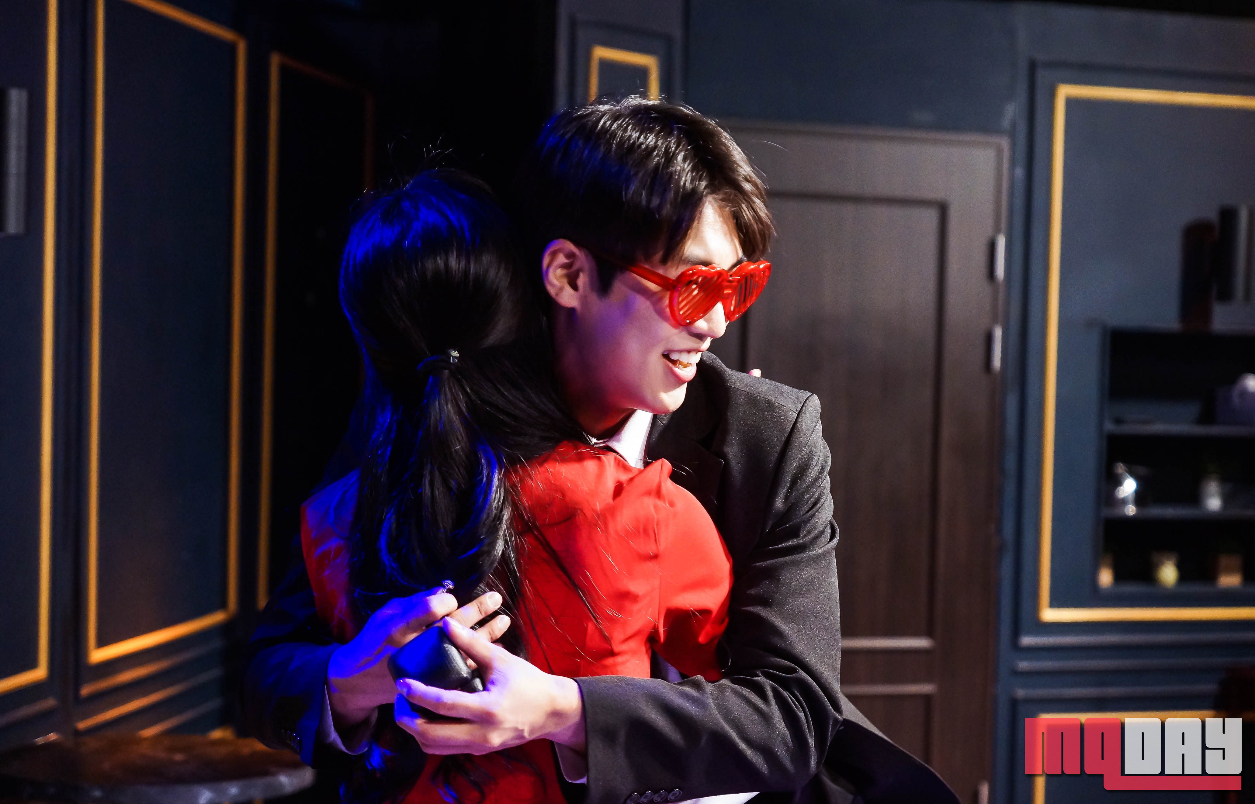 연극 ‘행오버’는 무거운 살인 사건을 다루면서도 곳곳에 코믹한 요소를 배치해 긴장감을 적절히 완화시킨다. 특히 ‘케이’의 과장된 행동이나 대사, 캐릭터간의 유머러스 한 상호작용은 관객들에게 웃음을 선사하며 극의 분위기를 다채롭게 만든다.