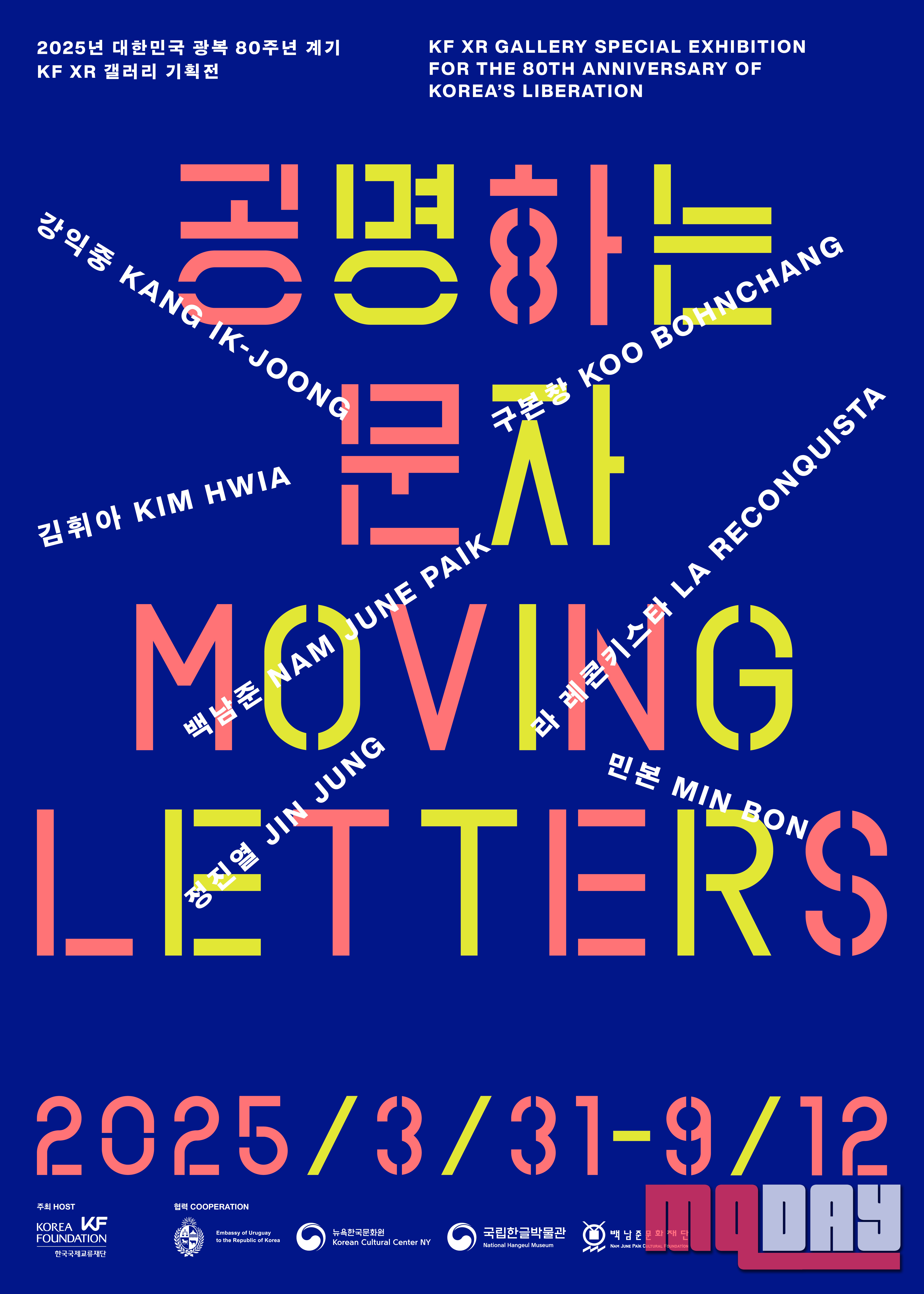 KF (Korea Foundation, 한국국제교류재단, 이사장 김기환)는 대한민국 광복 80주년 계기 ‘한글’을 주제로 한 기획전 ‘공명하는 문자(Moving Letters)’展을 9월 12일(금)까지 디지털 공공외교 체험 전시 공간인 KF XR갤러리(서울 중구 소재)에서 개최한다.