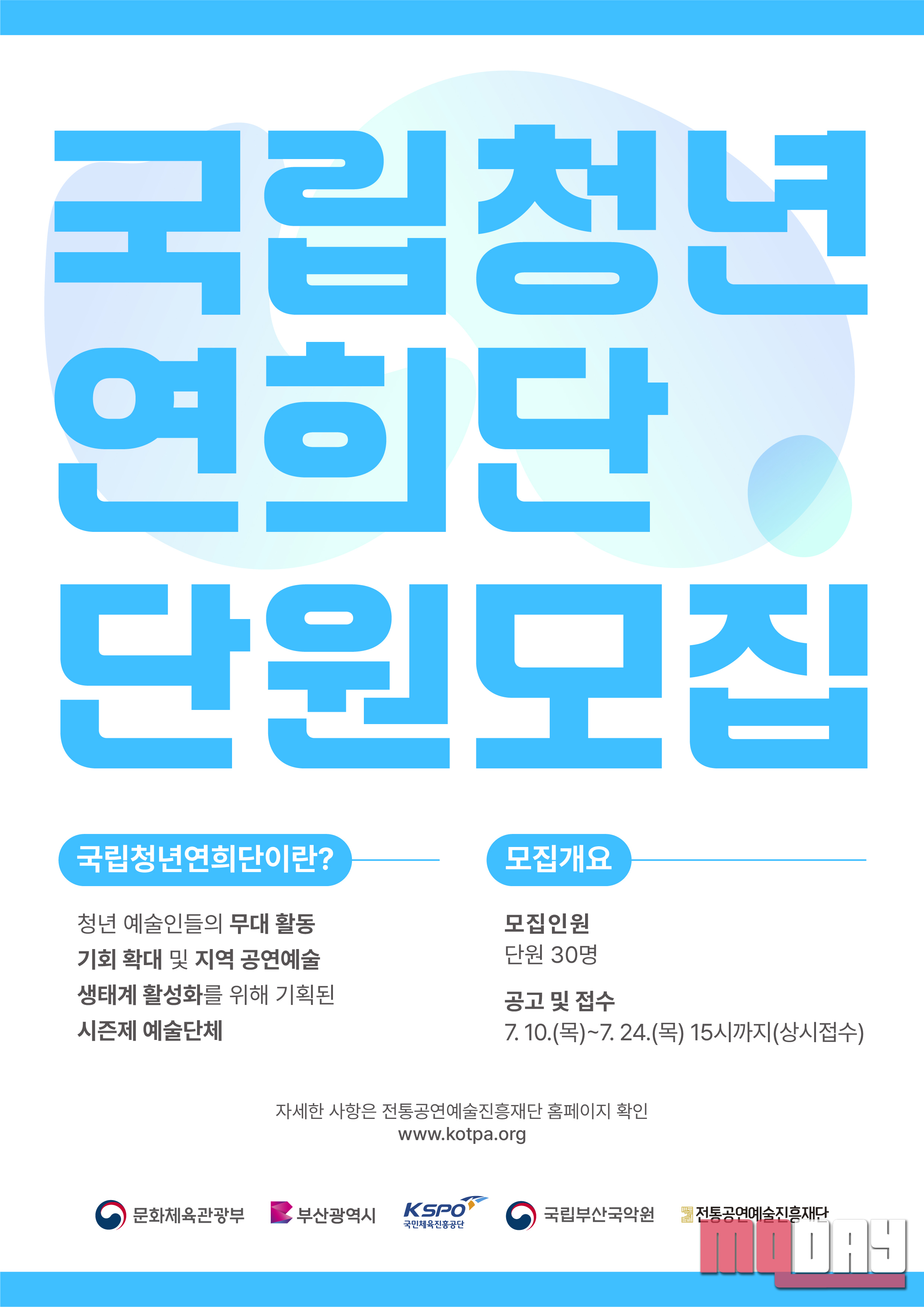 -7.10(목)부터 24(목)까지 국립청년연희단 단원 모집 접수